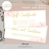 Jewelry Gift Certificate, Salon Gift Certificate, Gift Voucher Template, Spa Gift Card Printable for Teacher, Wedding Gift for Bridesmaid - GC037